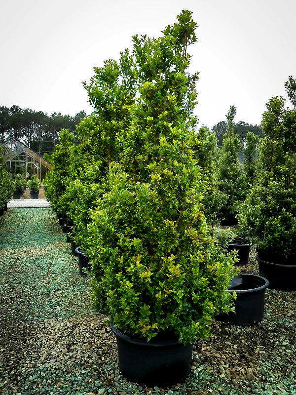 The Acadiana™ Holly was discovered as a seedling in 1989 by Jack Mitchell Magee, at the Evergreen Nursery, Poplarville, Mississippi. It was one of a batch of seedlings he had produced by crossing the hybrid holly ‘Mary Nell’ with seed from a male plant of the Tarajo Holly (Ilex latifolia) an ornamental holly native to southern Japan and China. The Mary Nell Holly is itself a hybrid between the widely-grown Chinese Holly (Ilex cornuta) and another rarer Chinese holly, Ilex pernyi. Together these plants create a very vigorous hybrid, combining the best features of each species. After extensive testing to assess its value, Mr. Magee was granted a Plant Patent in 2003 on his new holly and trademarked the name “Acadiana”.