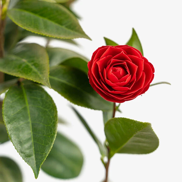 There was a time when camellia flowers were ‘all the rage’. At Grand Balls of the old South, in les salons of Europe, and in every ‘good’ home, the flowers were prized for their beauty and elegance. You can recapture some of that old-world charm and formality with the Black Tie Camellia. This evergreen bush has dark red flowers that look like they were arranged with a compass, so perfectly do the neat petals overlap each other, creating a wonderful formal shape. It doesn’t matter if you wear it to a ball or a black-tie event or not, you will love the winter gift this bush gives you. Out in the garden or in a sunroom, blooming at the end of winter, well before spring flowers start to appear, that first bloom is an exciting moment of perfection. Equally at home in the garden, with suitable soil, or in a pot, this robust bush is easy to grow, and the handsome dark-green foliage is always glossy and rich looking, keeping it attractive even when it is not in bloom. Enjoy the anticipation of watching those buds slowly swell, and then open to reveal a form so perfect that we can only believe it was created by the geometer of the universe.