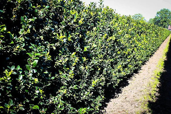 For hedges, space plants out evenly, 4 feet apart. Allow 3 feet in front and behind the line of your hedge for the plants to thicken as they grow. Trim lightly as new shoots emerge. For best berry crops on hedges, trim new growth in summer, leaving the developing berries on the older stems. This will allow time for flower beds to develop at the base of the new shoots. Holly bushes have separate plants for females, which produce berries, and males, which produce pollen to make the berries grow.