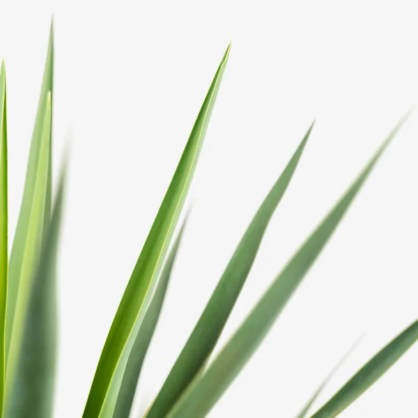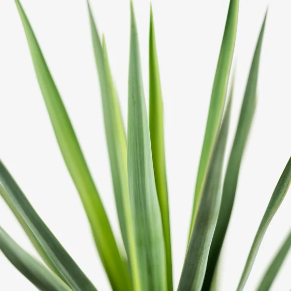 The Blue Sentry Yucca forms a cluster of narrow, upright leaves, forming a globe shape, with the lowest leaves horizontal and the highest ones vertical. Over time more groups of leaves will develop from the base, until you have a broad cluster of foliage up to 3 feet tall and across. Each leave is smooth, narrow, and leathery rather than thick and fleshy. The leaves stand erect at various angles, radiating out from the center.