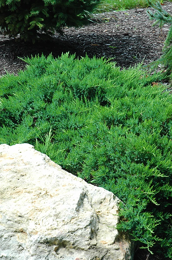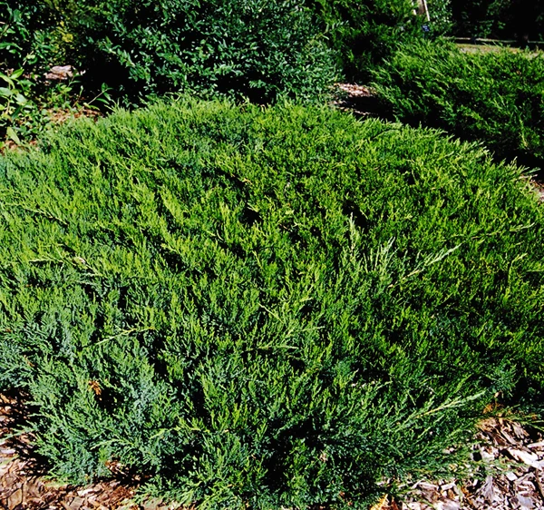 Full sun is the best location for the Broadmoor Juniper, but it will tolerate a couple of hours of shade each day. It should always be planted in well-drained soil, which is why slopes and banks are such good locations. For mass planting, allow 4 feet between plants, to create a solid cover in a few years. It will grow in any type of soil, including limestone soils, rocky gravels, sand, and heavy clays. It will not grow in wet soil, although it is less susceptible than most other varieties to the juniper blight (Phomopsis) that attacks junipers growing in wet ground. This plant is normally not bothered by pests or diseases, and deer and rabbits usually leave it alone. It grows in urban gardens, and this is one of the easiest plants for your garden, requiring no care to always look great. Allow plenty of room for it to spread, so that trimming is not needed. If you do need to trim it, cut back to a shoot on top of the main stem, so that the cut is hidden, allowing new growth to quickly develop. Do not cut back into bare branches, as these can never produce new shoots.