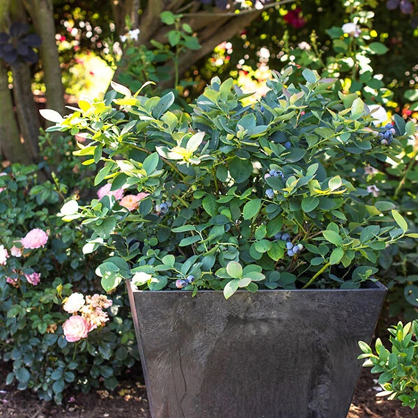 This plant is generally free of pests and diseases, and not difficult to grow in suitable soil. Keep well-watered year round, and use a fertilizer for blueberries, or one for acid-loving flowering shrubs, in spring and in early summer. This is especially important for pot-grown plants. Make sure your planter has drainage holes, and only let the top ½ inch dry before watering thoroughly. No special pruning is needed, but you can trim a little after harvest, if you want to.