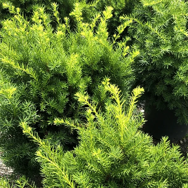 Although often thought of as a bush for shade, Dense Spreading Yew grows well in full sun, as long as the ground is not too dry. It will become very dense, and perhaps a little lighter green. It also grows well across a wide range of shade conditions, although not so well in dark full shade, such as beneath large evergreens. Pretty much anywhere in your garden – it will grow. The soil should be well-drained (this is important) but rich, moist soils are preferred. Established plants can easily handle normal summer drought in cooler zones.