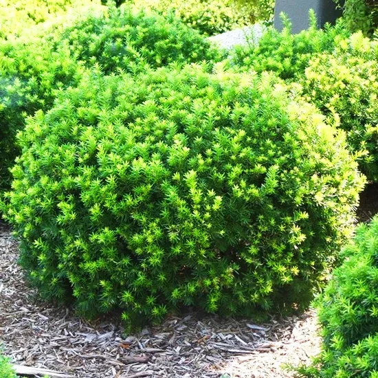 Foundation plants are the fundamental planting around your home, and so fundamental is the Dense Spreading Yew to this important task, that it is often called ‘Foundation Yew’. The absolute ‘go-to’ when you want to fill spaces, in sun or shade, this is also the toughest yew for cold-resistance, growing perfectly happily without protection in zone 4. Beautiful as the English yew can be, it can’t take the cold, so if you garden in cold areas, do yourself a favor and choose this bush for evergreen planting. A moderate grower, it will always be broader than it is tall, and almost begs you to take the clippers to it, so easy it is to clip and shape into neat edges and rounded forms. Of course, in today’s more casual gardens, why not just let it do its own thing – you will be amazed and thrilled by the natural arching form it takes as it spreads outwards. The perfect evergreen for busy gardeners, and those who want to see things look good, without having to fuss over it. ‘Dense’ and ‘spreading’ just about sums it up, not forgetting of course the rich dark-green of those soft needles, and the classic charm of a reliable old friend.
