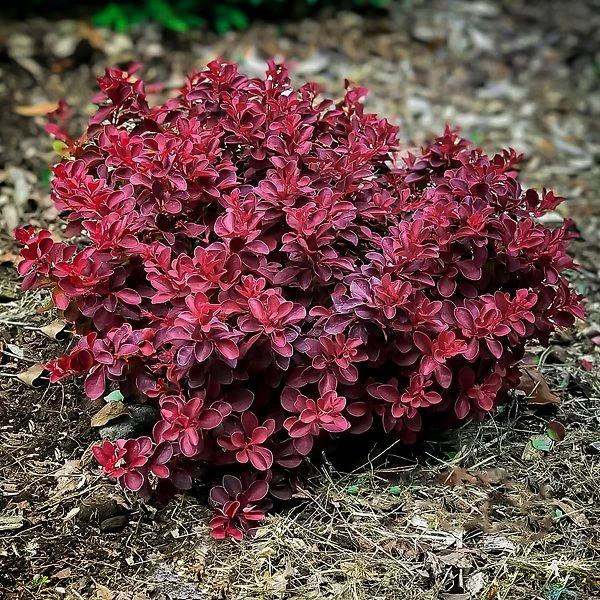 The Fireball Japanese Barberry is a compact, rounded deciduous shrub that needs no clipping to stay neat and attractive. It grows between 12 and 24 inches tall and forms a neat ball the same size across. It is fast-growing and soon becomes an attractive feature in your garden, however you use it. Without a doubt this is the brightest Japanese Barberry available. The leaves are a brilliant red from the moment they emerge in spring, and all through the summer months. In fall their color deepens, and for solid, reliable and permanent red, this bush is simply unbeatable. As well, although there have been issues with some Japanese Barberry invading natural areas in some parts of the country, this plant has no flowers, so it cannot and does not produce any seed, so it can never spread. You can grow it anywhere and protect your natural surroundings as well.