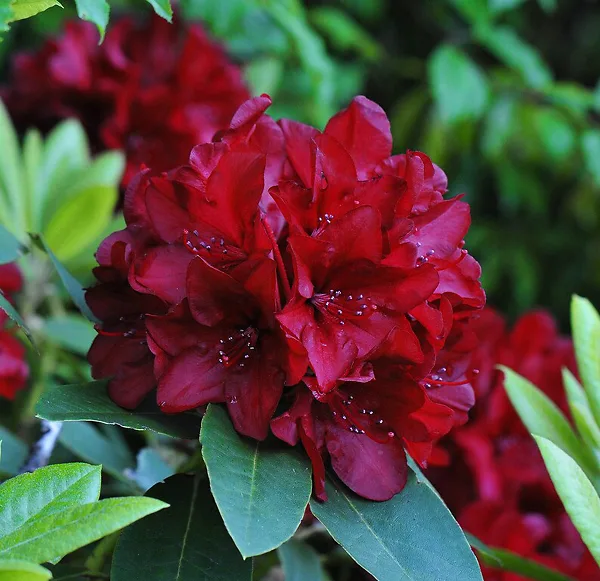 The foliage is a little unusual, and the Firestorm Rhododendron doesn’t stop being special with just that. It flowers late in the season, keeping your spring display going strong for several more weeks. Carried in enormous trusses containing up to 16 booms, and with many clusters even on a small bush, ‘firestorm’ is the perfect description for these amazing blooms. They are the most brilliant red, with each flower up to 3½ inches across, with wavy edges. Each flower is solid red, undiminished by any of the spots, splotches and lighter areas seen in a lot of rhododendrons. Truly a glory to behold, and enough to bring tears to the eyes of any lover of red flowers.