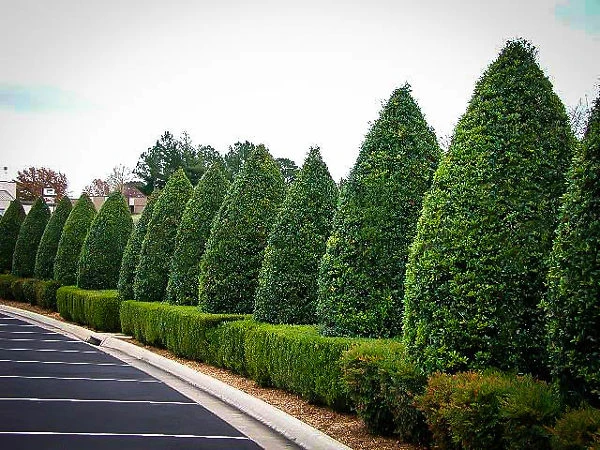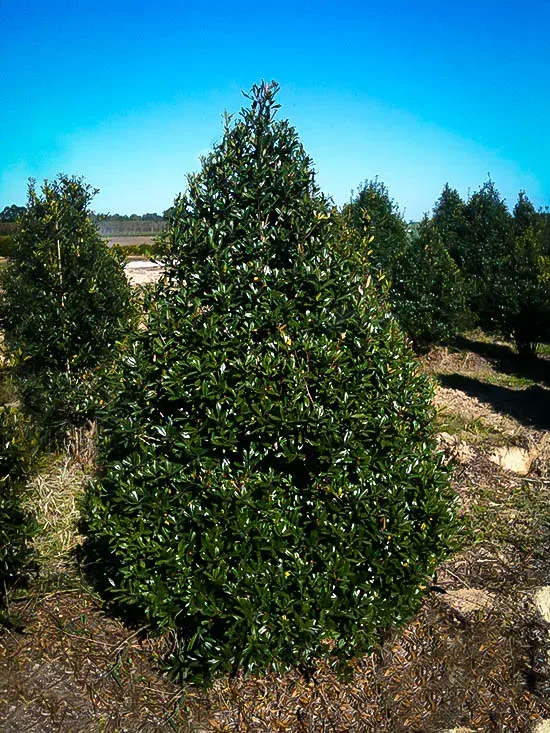 This vigorous small tree will grow 15 to 25 feet tall and 8 to 12 feet wide, if left untrimmed. It makes a great specimen in an open area, or a background plant, filling a corner of your garden behind other bushes. Since it is evergreen it also makes an excellent screening plant, as a row along the edge of your property. Since it can easily be trimmed, it is also a perfect choice for a hedge, especially since it will grown in partial shade and in full sun.