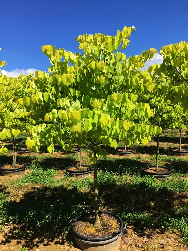 The Hearts of Gold Redbud is a special form of the eastern redbud, Cercis canadensis. Although the name implies it grows in Canada, it is only found in the most southern part of Ontario, but it grows all through New England, around the Great Lakes, and down into Florida and Texas. The variety called ‘Hearts of Gold’ was discovered in the spring of 2002 by Jon Roethling growing as a single seedling plant in a private garden in Greensboro, North Carolina. Pieces were taken to the Hidden Hollow Nursery in Belvidere, Tennessee that fall, and successfully grafted onto ordinary redbud seedlings. Our trees are grown in the same way, to ensure their perfect genetic continuity from that original unique plant. This tree is a big hit with all gardeners who see it, and the demand is far greater than the supply. Order now, as they will all be gone very soon.