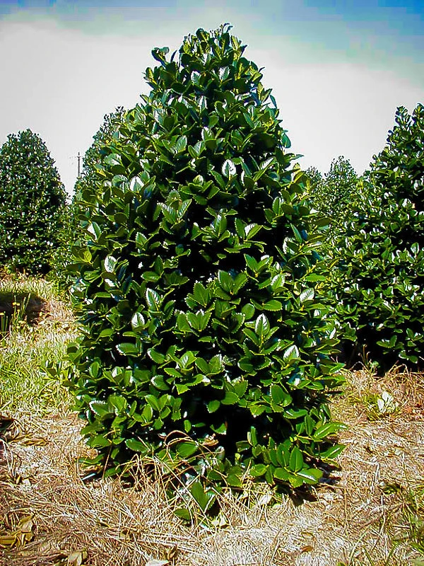 Trim lightly in late spring, to shorten the new growth back by a few inches. New shoots will develop from the cut branches, and these should be trimmed again in late fall. This trimming schedule will maximize the amount of newer, berry-carrying stems, while keeping your plants always looking neat. Fertilize in early spring with a suitable fertilizer for evergreens, and water during dry spells. Established plants are moderately drought resistant. This tree is rarely bothered by pests or diseases, making it easy to grow and trouble-free. For the best berry production, grow this tree within 200 feet of a male holly tree, ideally of a Chinese holly.