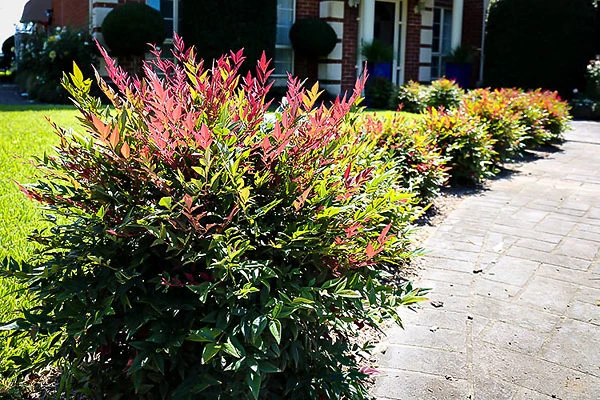 Plant the Obsession™ Nandina wherever you want a lower shrub in the foreground of larger ones or mixed with other small shrubs in a small bed. It looks great planted alone or in small groups (perhaps of 2, 3, 5 or 7 plants) as accents among other plants or to fill awkward corners. It fits well into almost any style of garden, and it is a very useful and non-invasive substitute for bamboo in Asian-styled gardens, especially in smaller spaces. It looks great next to water, or in front of larger shrubs and trees. It is also a fantastic choice for filling long, narrow spaces between paths and fences or walls, or for edging a walkway, driveway, or larger beds. It makes the perfect visual boundary, without blocking the view across the areas at all, and it never needs trimming to stay neat and attractive. For edging, plant each shrub 18 inches to 2 feet apart in a row. They will soon grow together into a single bold line.