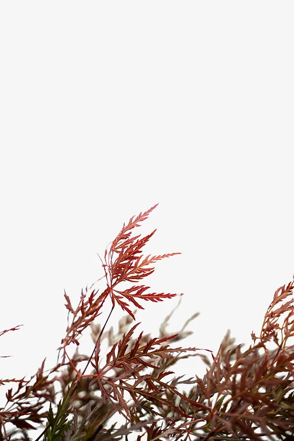 Some gardeners do not plant Japanese maples because they think they are too slow growing. This can be true, but certainly not with the Orangeola Japanese Maple. This is one of the fastest-growing cut-leaf Japanese maples you can find, quickly developing into a magnificent specimen. It has an unusual form, growing upright but also weeping, so that over time it becomes a broad mound of cascading branches. This makes it especially useful on sloping sites, or at the top of a wall, or to plant in a tall pot, where the full waterfall of its branches can be appreciated best. Its form is only just the beginning of its beauty. The foliage is of the ‘dissectum’ type – deeply divided into 7 to 9 very narrow lobes, each lobe with an irregular edge, giving a beautiful lacy appearance to the leaves.