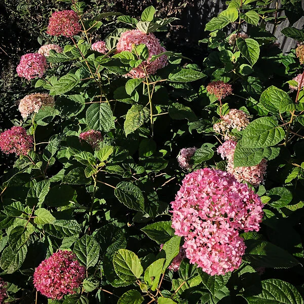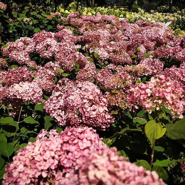 The ideal conditions for the Pinkerella Hydrangea are in morning sun and afternoon shade. In cold zones, with good watering, it will grow in full sun, and in warmer zones take more shade, even dappled shade all day long. The soil can be acid or alkaline – the blooms will always be a clean pink – and it should be rich and moist, but well-drained. Water regularly, as this plant is not drought resistant.