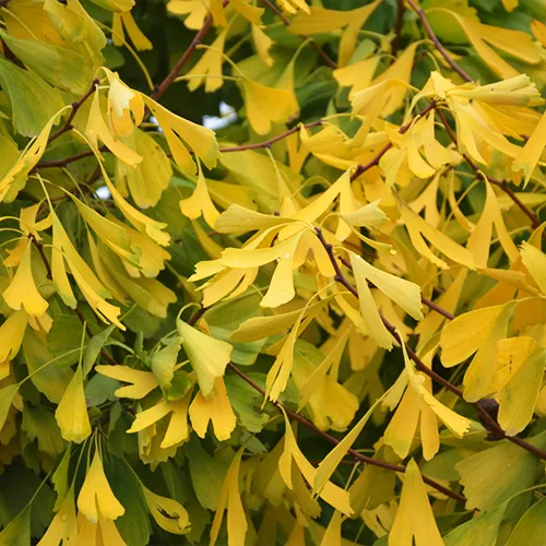 The gingko, or maidenhair tree, is a popular and reliable shade tree that tolerates harsh urban conditions better than almost any other tree. With unique, attractive foliage and gorgeous butter-yellow fall color, it’s a great addition to any garden. The trouble is, young trees are often gaunt and open, and it can take a long time for them to develop an attractive bushy crown. That is exactly why the Saratoga Ginkgo Tree was developed. This renowned variety soon builds a dense, bushy crown with a strong central stem, forming a pyramidal tree from an early age, producing none of the famously smelly ginkgo fruits, and developing over time into a majestic specimen. All this already makes it a top choice, but it has more to offer. It makes a smaller tree than most gingko trees, so it’s ideal for smaller gardens and where you have limited space. The foliage is unique too, with a pendulous habit, a slender form and a more pronounced split into the two lobes that give this tree its name. When choosing plants it is always fun to try something new, but with large trees it’s different. We plant trees for the long-haul, and it is always best to rely on the skill and experience of experts. The Saratoga Ginkgo Tree is always in the top 5 varieties recommended by horticulturists for planting. Take their advice – you won’t be disappointed.