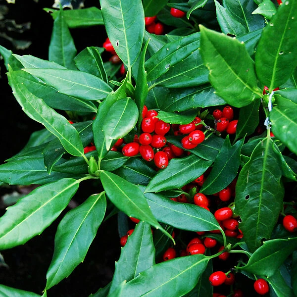 In warmer parts of the country there are often many evergreen trees, and as the garden matures and grows these throw increasingly more shade, so that dark corners, shady every day of the year, are common. It can be incredibly difficult to find plants that will survive in these ‘dead’ spaces, so we end up with empty areas, with nothing but dirt or mulch to look at. If you are familiar with this problem, and have tried different plants without success, we have the answer for you. The Sawtooth Aucuba is, honesty, the most shade-tolerant plant on the planet, and it will grow where nothing else will. It even stays bushy and dense, sending up new shoots from ground-level as it grows, while other ‘shade-loving’ shrubs only reach for the light, leaving the ground beneath them still bare and even more shady. As well as being incredibly tolerant of darkness, the Sawtooth Aucuba has attractive glossy leaves that are large and much more interesting than the over-planted cherry laurel. Plus, this plant carries huge crops of bright red berries in winter, brightening those dark corners even more. You have to grow it to believe how great this plant is, so say ‘goodbye’ to blank earth, and ‘hello’ to the Sawtooth Aucuba.