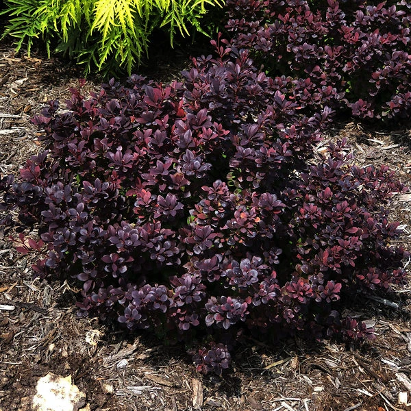 Barberries might be the perfect low-maintenance shrubs. Dense and compact, many have fabulous leaf colors, and they come in lots of colors, all of them gorgeous. Some are taller, but for a compact form, for edging, smaller beds, or wherever you need a rounded plant under 3 feet tall, look no further than the Sunjoy Todo™ Barberry. With its rich purple glossy leaves and dense, compact form, it needs no trimming to stay neat, and it brings its wonderful coloring to your beds all year round, because it is semi-evergreen, holding most of its leaves right through winter.