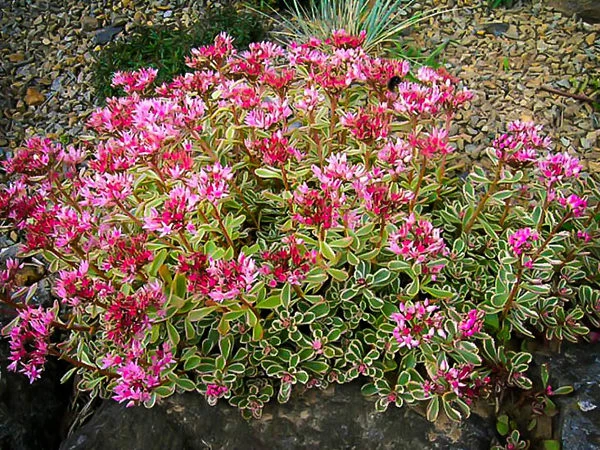 The Tricolor Sedum softens the edges of beds where they meet drives and walkways, covers slopes and prevents erosion, and is a top choice for any rocky or gravel areas. It can be planted beneath specimen shrubs and trees, including dwarf evergreens, to enrich your planting, without adding maintenance tasks to your busy life.