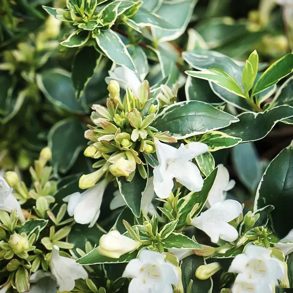 The classic combination of green leaves with white edges is an unfailing success in the garden. These plants always look bright and cheerful, and they fit in anywhere, always looking cool, calm, sophisticated and appealing. Unfortunately, many of them are large bushes, needing endless trimming if you want to keep them small. That’s why we knew right away we had a winner when we saw the Twist of Vanilla™ Abelia. Its neat green leaves have a slender edging of white, creating a bright, glowing plant that is perfect in beds, or trimmed into a border. The white flowers that come in summer and fall add to its cool look, and when other plants are disappearing into the evening dusk, white ones come to life, and glow out at exactly the time you are outdoors relaxing after a busy day.